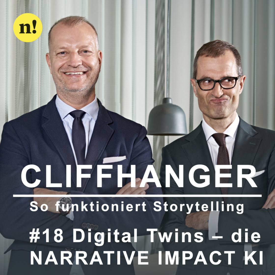 Gunnar und York, die beiden Storyteller und Sprecher des CLIFFHANGER Podcasts haben jetzt Zwillinge. Die Digitale Zwillinge YorkAI und GunnarAI. Und Ihr könnt jetzt mit Ihnen sprechen, um mit ihnen Eure Fragen zum Storytelling beantwortet zu bekommen. Ihr findet die „NARRATIVE IMPACT KI“ im GPT-Store von OpenAI. Wir wünschen viel Spaß beim Chat! Und bitte Humor, wenn die KI – Ihr wisst, wie die KIs so sind – auch mal Quatsch verzapft.